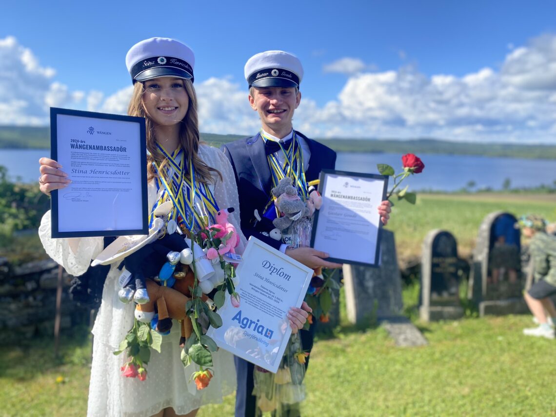 I år fick två ungdomar dela på det ärofyllda stipendiet Årets Wångenambassadör. Stina Henricsdotter och Gustav Goude flyttade från Hudiksvall till Jämtland samtidigt. Efter att ha gått tretton år i samma klass fick de avsluta med att dela på ett stipendium värt 10 000 kr.