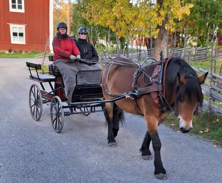 Det finns sedan många typer av uppdrag du kan åta dig efter kuskutbildningen. Här är ett exempel från Gunnebo Slott där Emma Andersson arbetat som brukshästkusk.