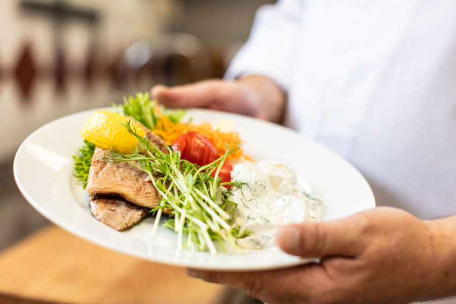 Vi prioriterar att servera lokala råvaror och har ett gott samarbete med Alsens lantbruk.
